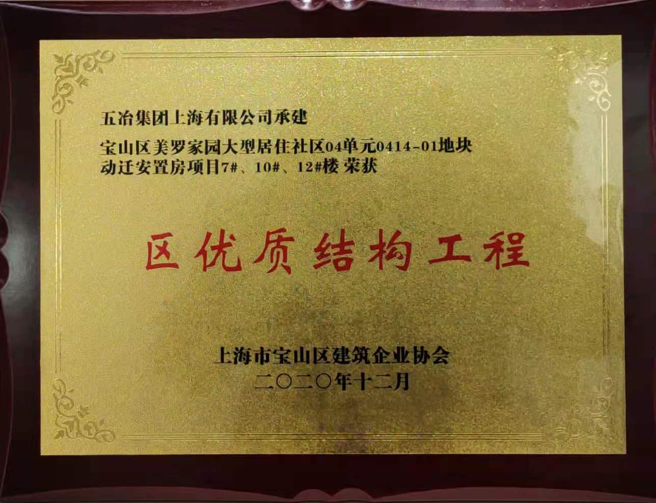 寶山區美羅家園大型居住社區04單元0414-01地塊動遷安置房項目7#、10#、12#樓區優質結構工程-2021年長江杯優質工程