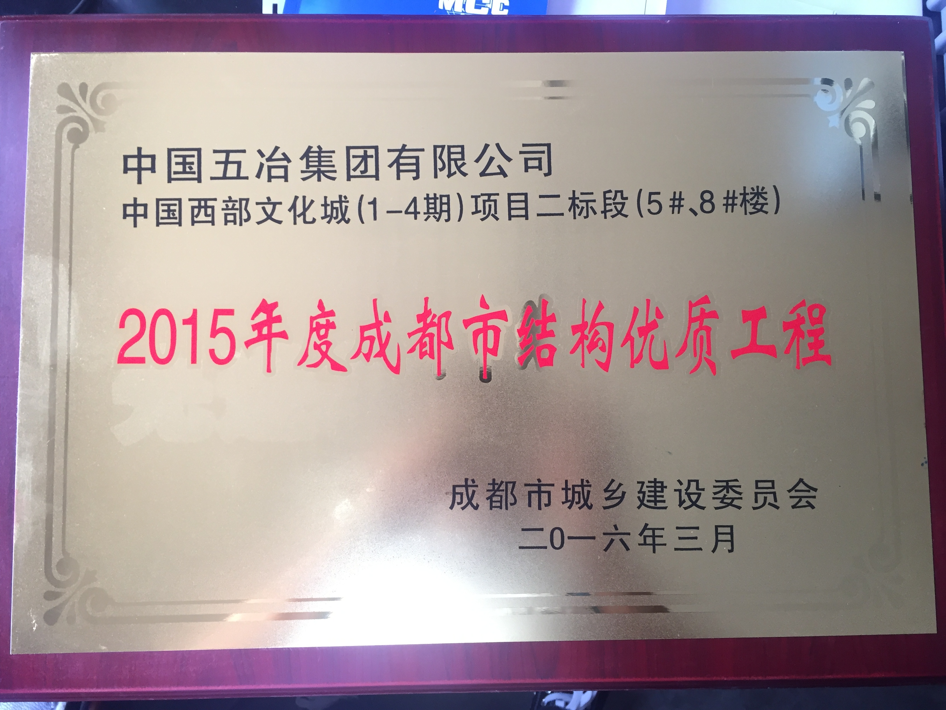 中國西部文化城(1-4期)項目二標段(5#、8#)—2015年度成都市結構優質工程