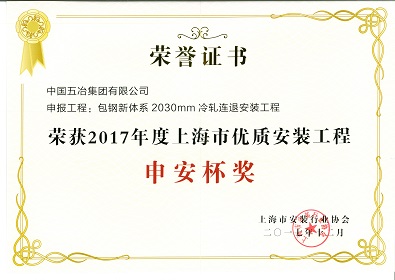 包鋼新體系2030mm冷軋連退安裝工程-2017年度上海市優質安裝工程申安杯獎