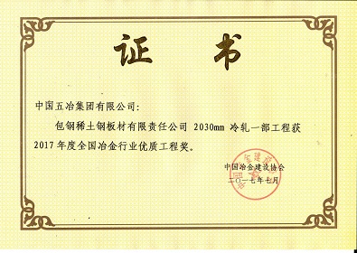 包鋼稀土鋼板材有限責任公司2030mm冷軋一部工程-2017年度全國冶金行業優質工程獎