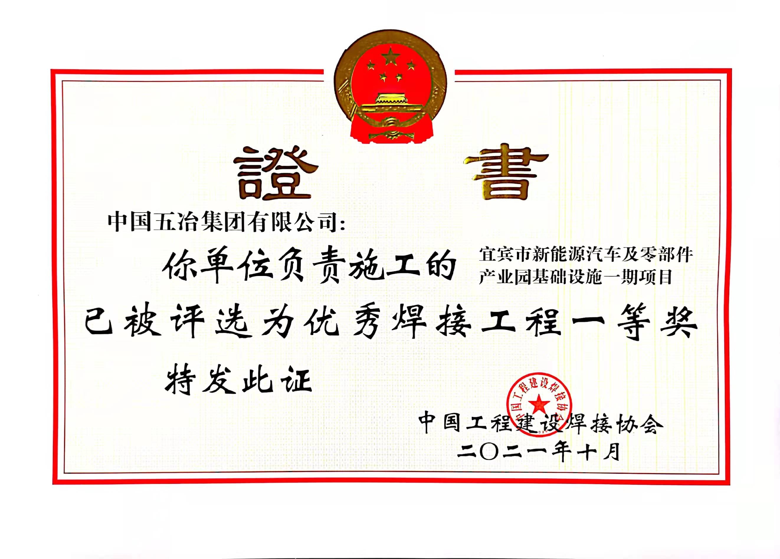 宜賓市新能源汽車及零部件產業園 基礎設施一期項目-2021年度全國優秀焊接工程一等獎