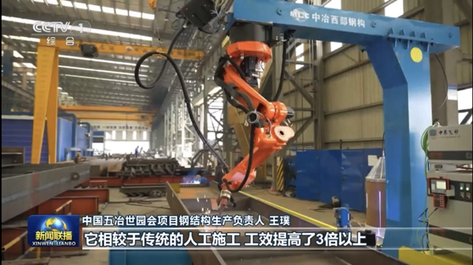 中國五冶集團世園會項目生產負責人王璞在接受記者采訪時表示,本屆世園會綜合服務館、主展館、錦云樓、天府人居館、植物館五大核心場館的鋼構件生產大量使用五冶建筑科技產業園的自動化焊接機器人,相較于傳統的人工施工,功效提高了3倍以上,工廠預制、現場裝配的建造方式充分踐行了世園會綠色低碳的辦會理念。